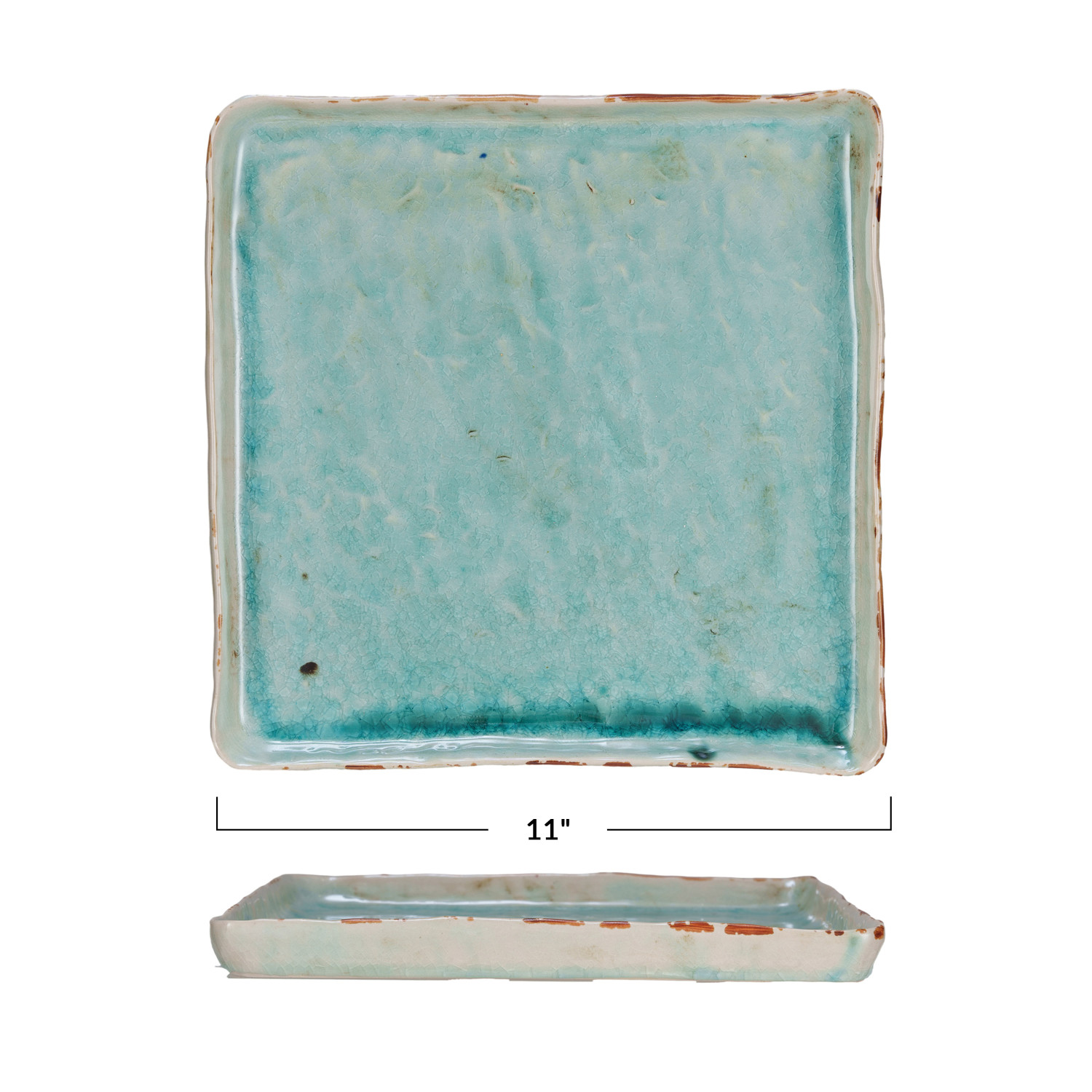Catalog Name: 11" Square Stoneware Serving Tray, Reactive Crackle Glaze, Aqua (Each One Will Vary)