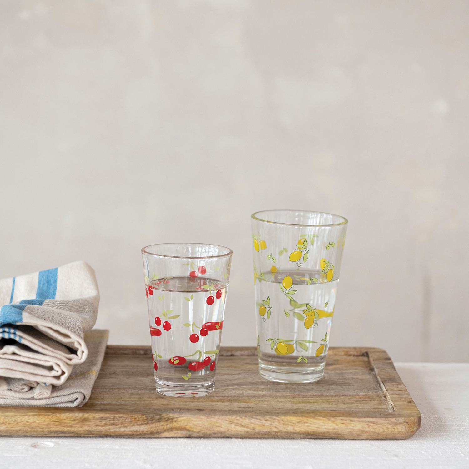 10 oz. Drinking Glass with Cherry Decal, Red & Green