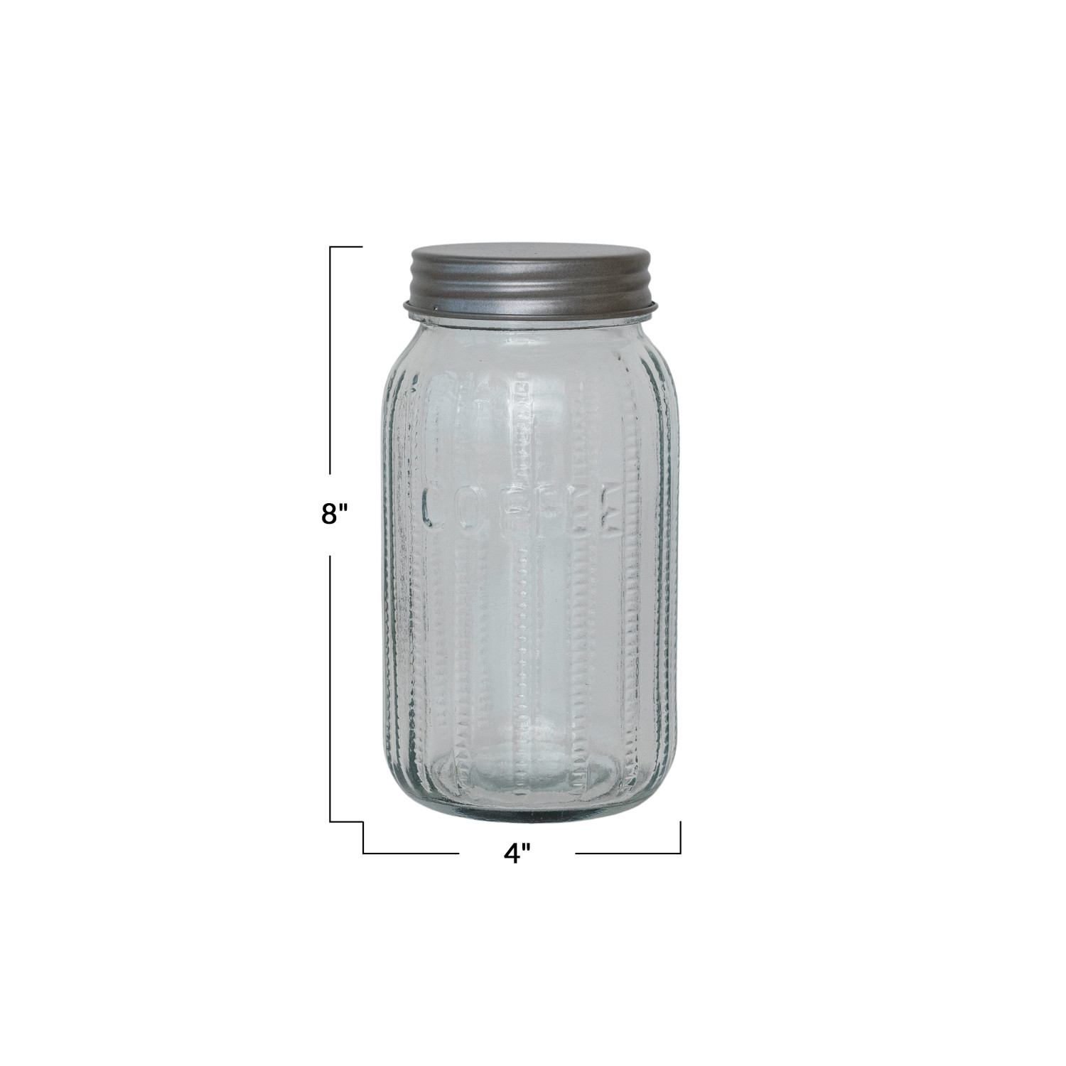 This Embossed Glass Jar with a metal lid labeled "Coffee" is a classic kitchen staple with a twist. The clear glass body, adorned with a delicate embossed pattern, allows anyone to see the rich hues of the coffee, while the metal lid seals in flavor and freshness. It's a practical piece that doesn't skimp on style, fitting seamlessly into settings that appreciate the rustic appeal of farmhouses, the elegance of French country, or the boldness of industrial design. Beyond its good looks, it's the perfect size to hold a generous supply of coffee, ensuring a morning cup is always within reach.
