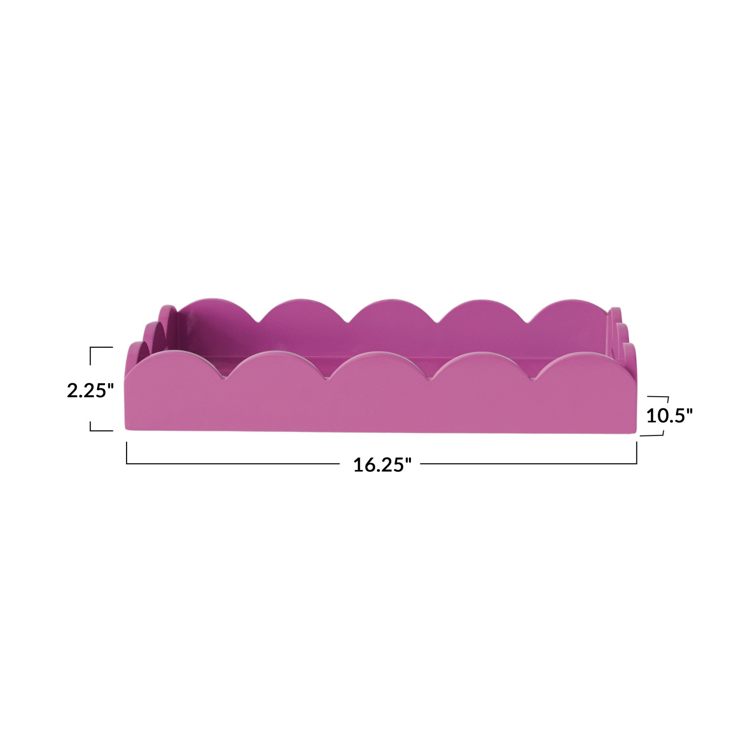 Catalog Name: 16-1/4"L x 10-1/2"W x 2-1/2"H MDF Lacquered Scalloped Tray w/ Handles, Fuchsia Color