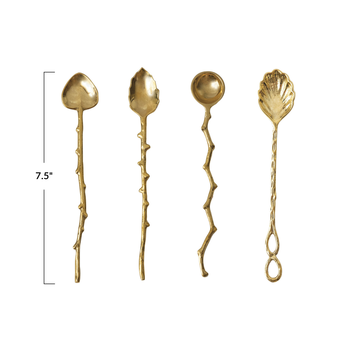 Catalog Name: 7-1/2"L Brass Spoon w/ Twig Shaped Handle, 4 Styles