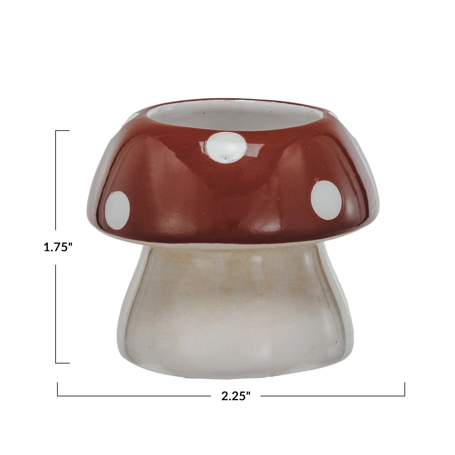 Catalog Name: 2-1/4" Round x 1-3/4"H Hand-Painted Ceramic Mushroom Shaped Toothpick Holder, Red & White