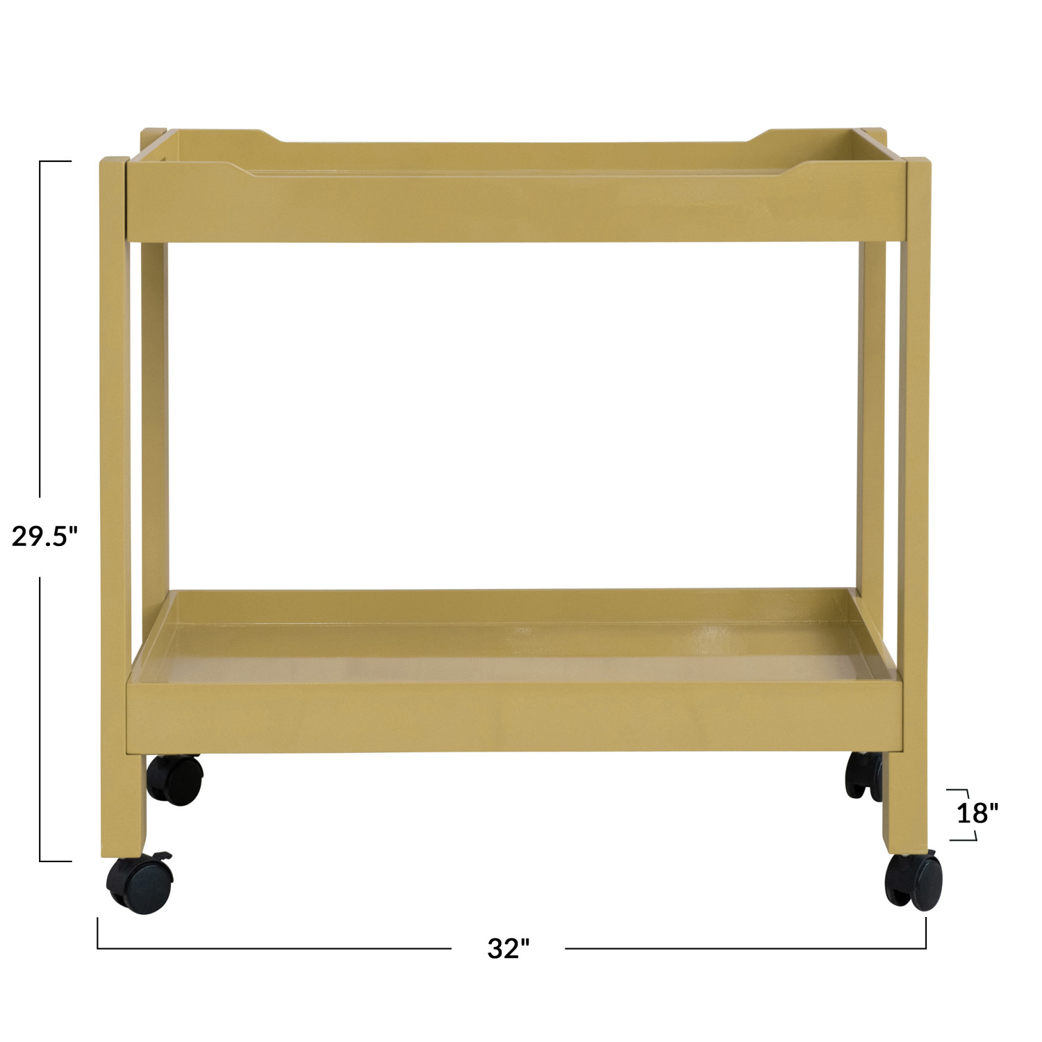 Catalog Name: 32"W x 18"D x 29-1/2"H MDF & Acacia Wood Lacquered 2-Tier Bar Cart on Casters, Yellow, KD