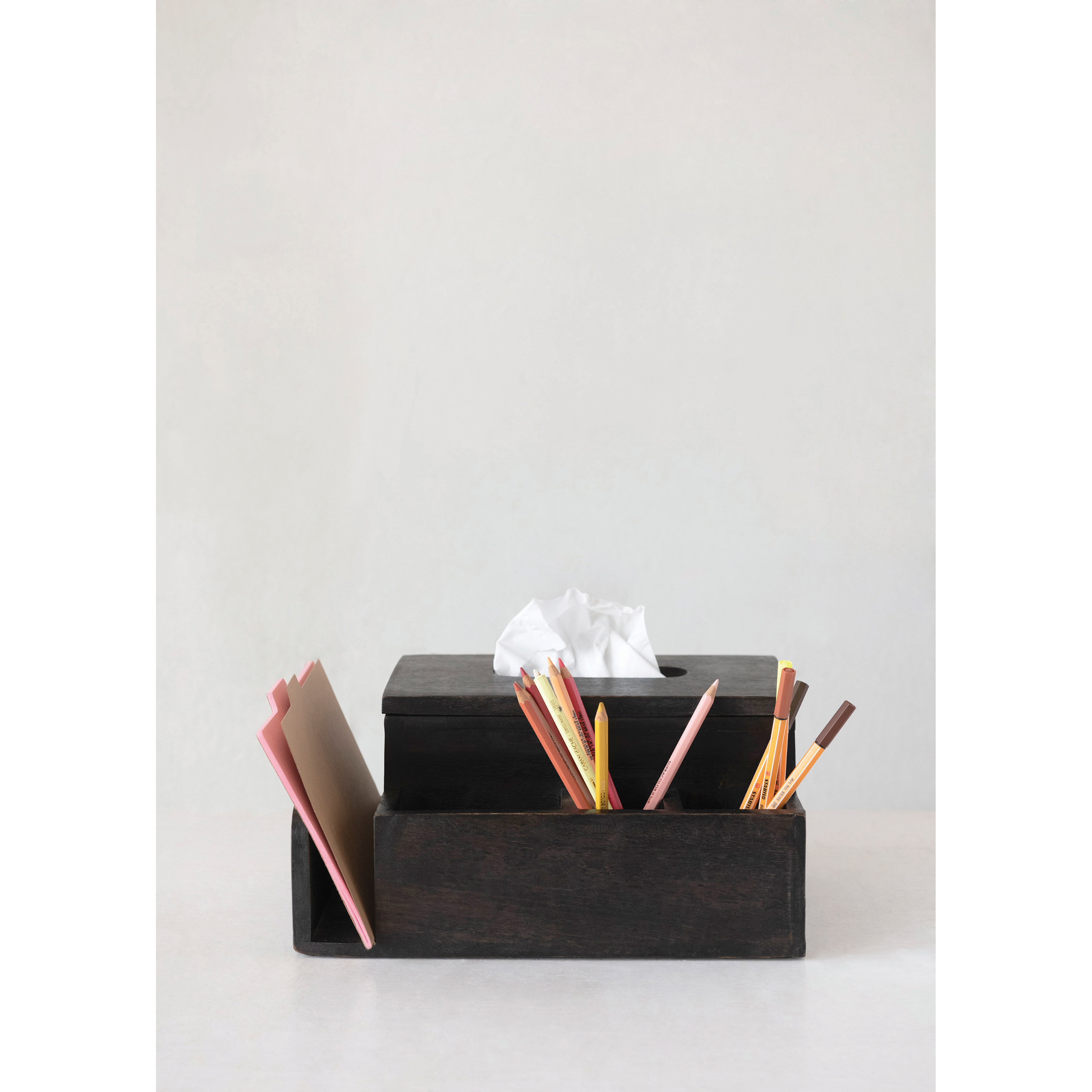 Black mango wood tissue box holder with 4 compartments. Add a touch of style to a powder room or home office with this artfully crafted tissue box holder. Made from 100% mango wood. Curate a space that reflects your unique sense of style with intentionally designed home décor.