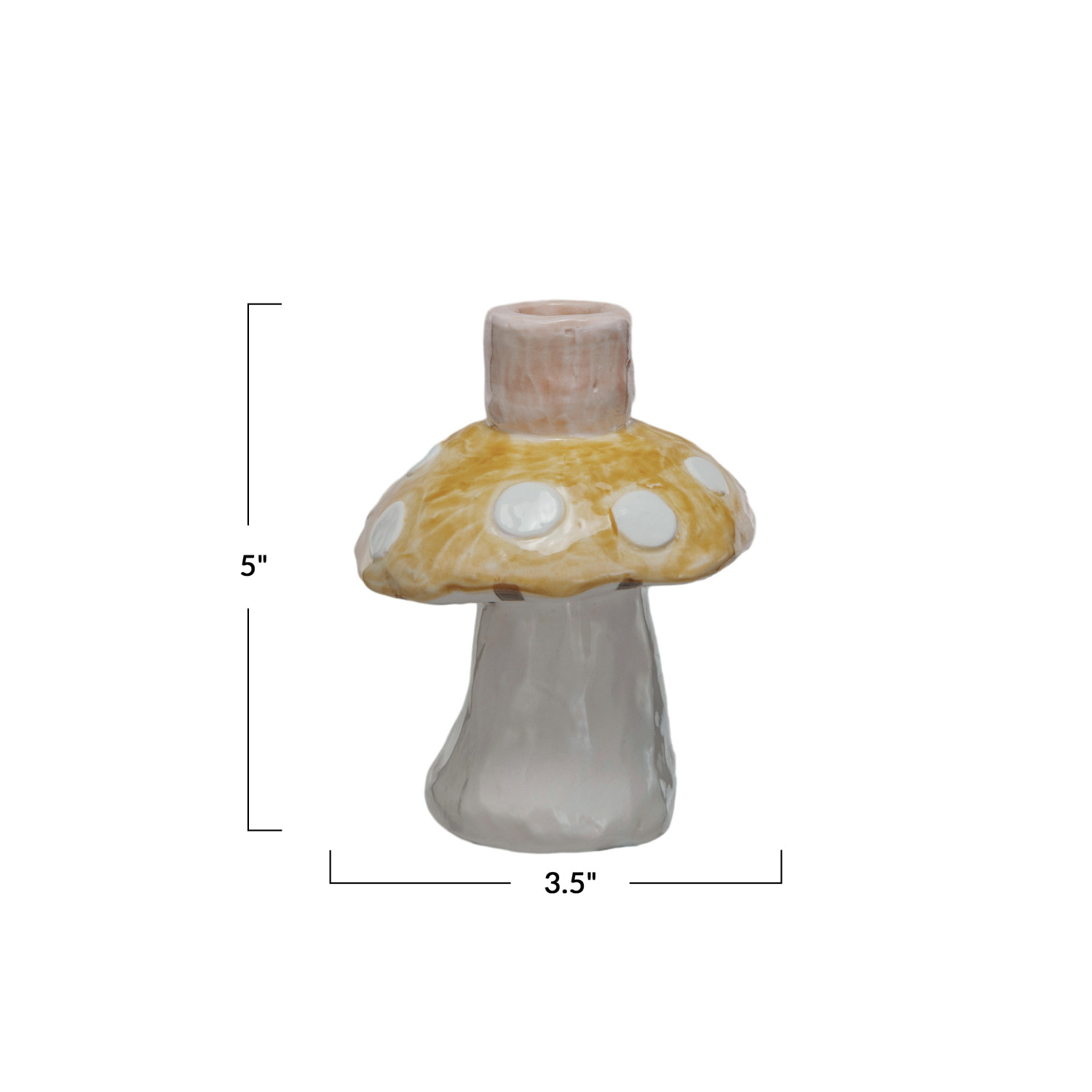Catalog Name: 3-1/2" Round x 5"H Hand-Painted Stoneware Mushroom Taper Holder, Reactive Glaze, Pink, Yellow & Cream Color (Each One Will Vary) ©
