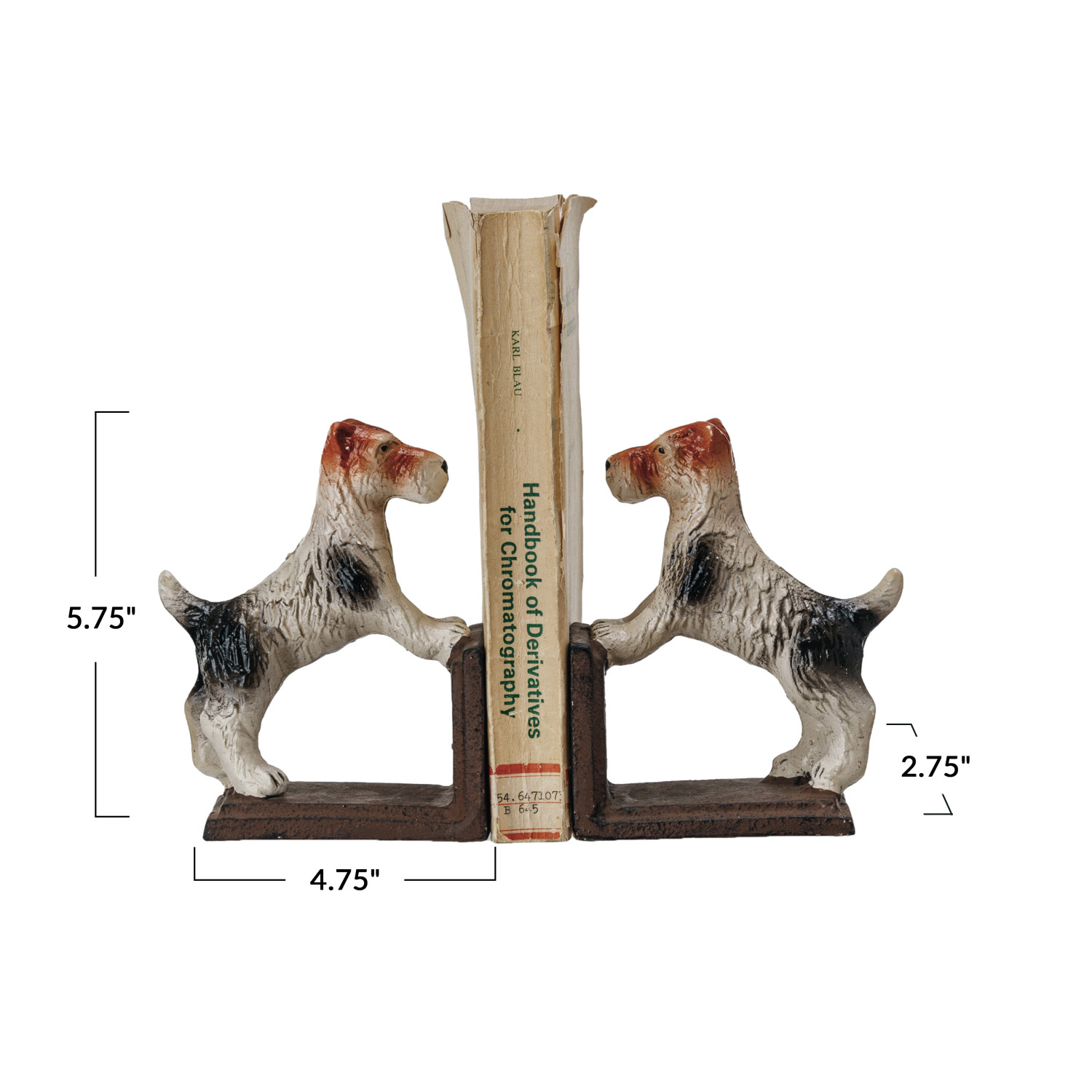 Catalog Name: 4-3/4"L x 2-3/4"W x 5-3/4"H Cast Iron Jack Russell Terrier Bookends, Multi Color, Set of 2