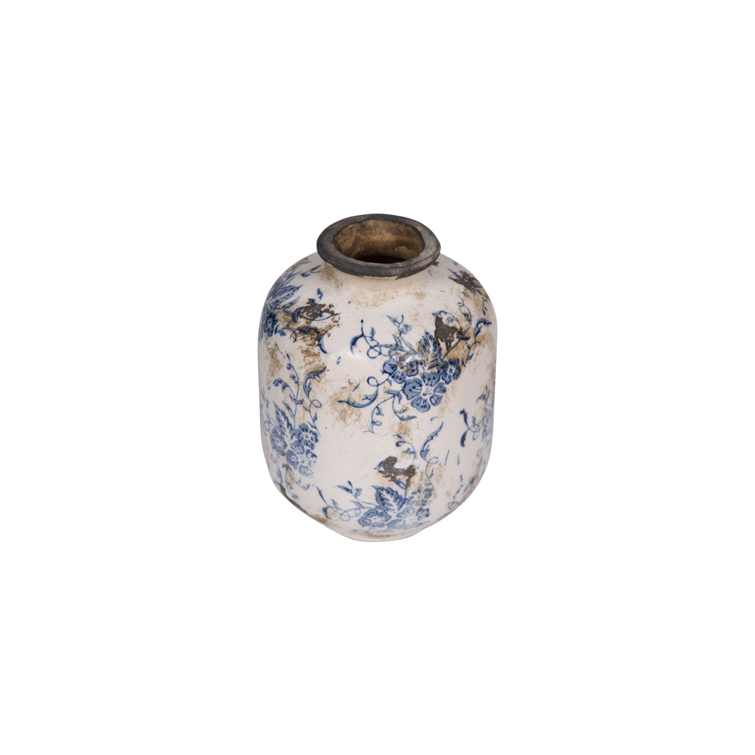 Catalog Name: 4" Round x 5-3/4"H Terra-cotta Vase w/ Transferware Pattern, Blue & White, 3 Styles