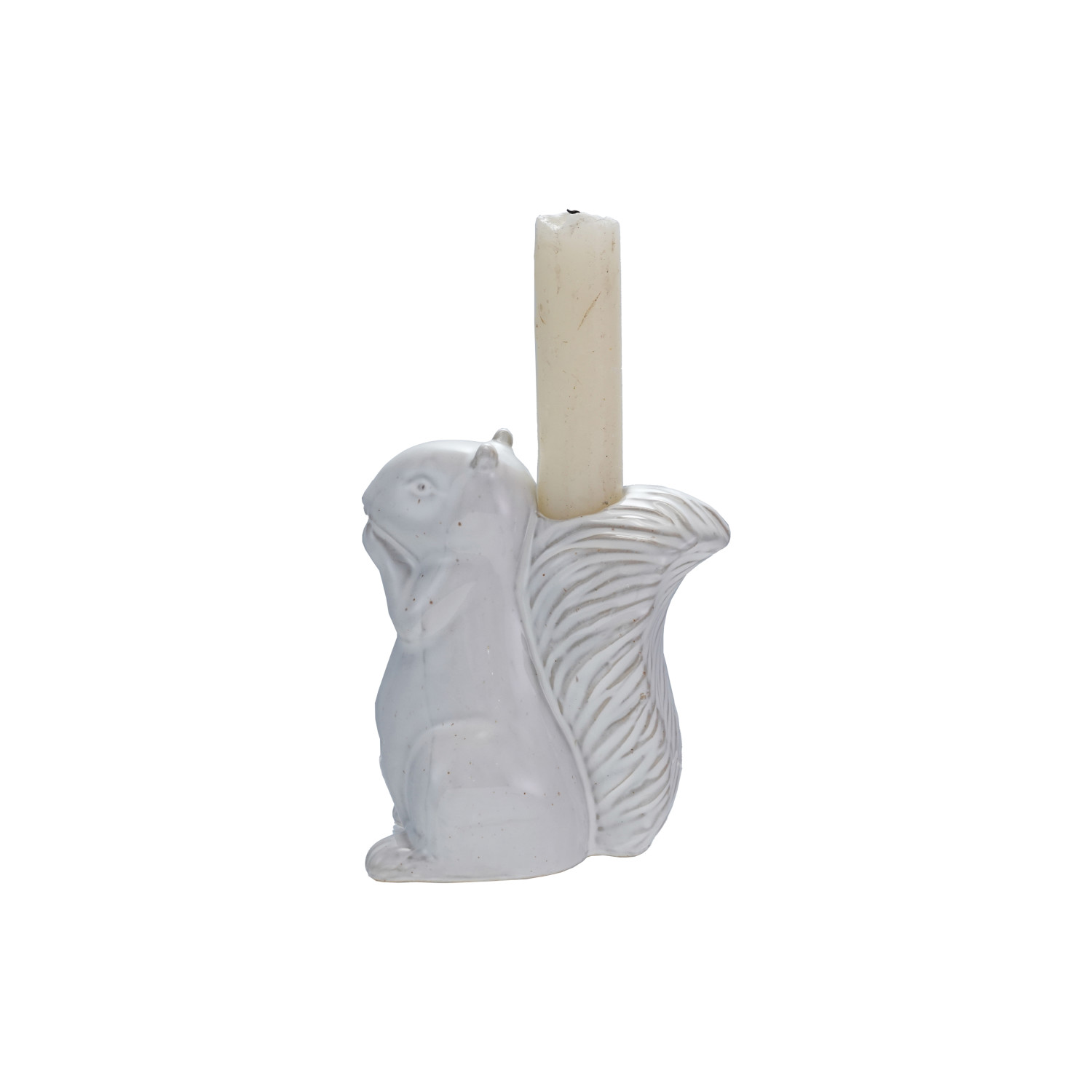 Catalog Name: 3-3/4"L x 2-1/2"W x 4-1/4"H Stoneware Squirrel Shaped Taper Holder, Reactive Glaze, White (Each One Will Vary)