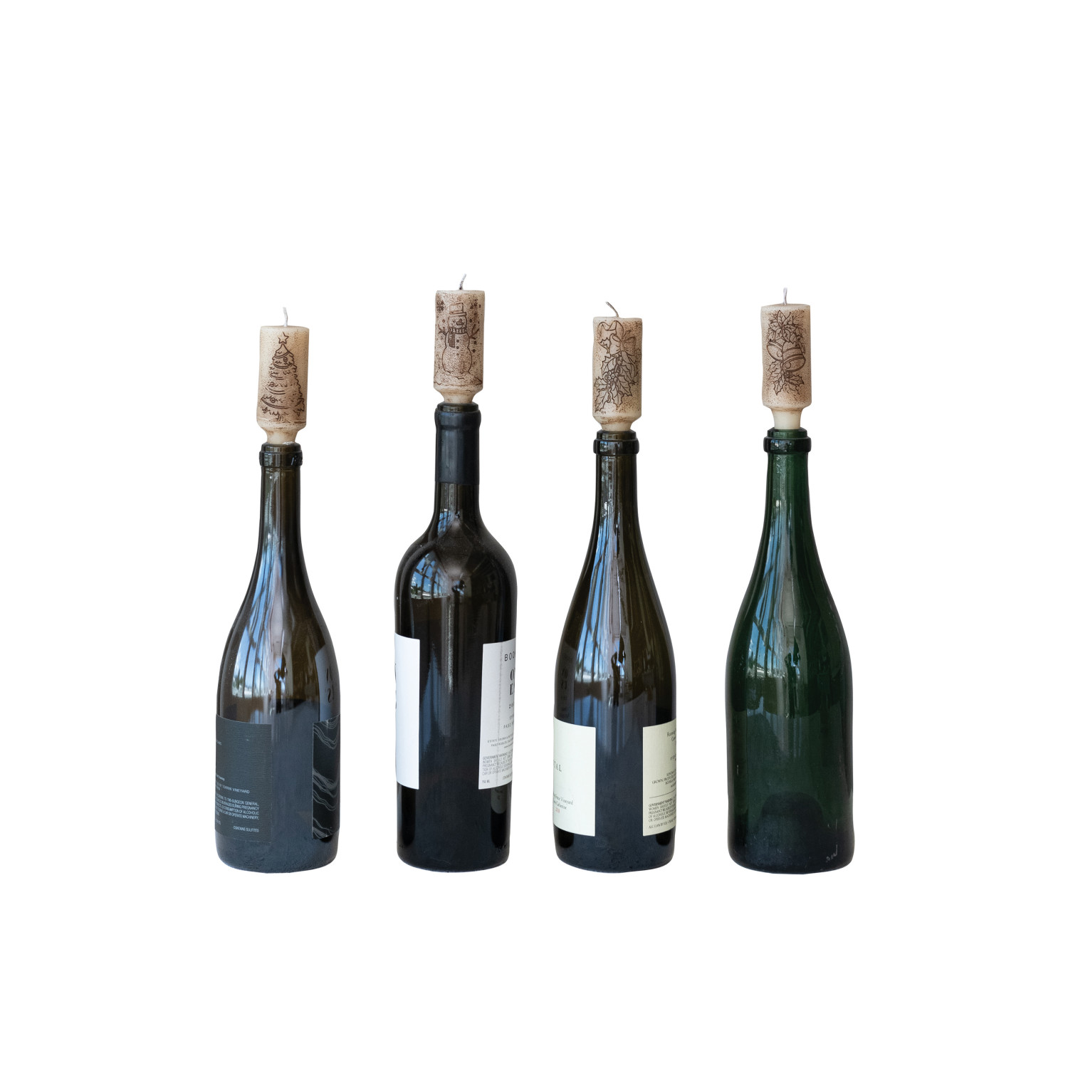 Unscented Bottle Taper Candles in Box with Design, Set of 4