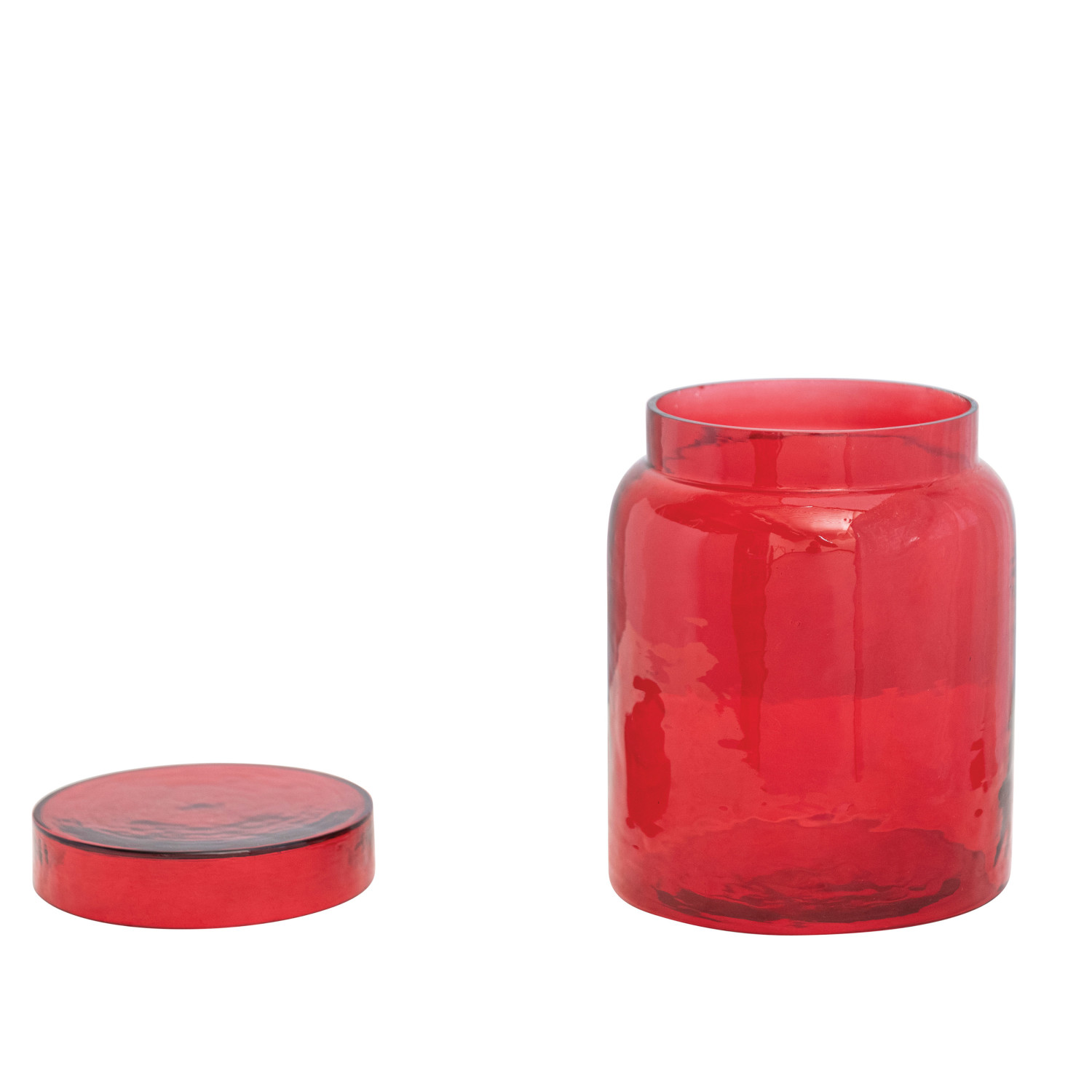 Catalog Name: 6" Round x 7-3/4"H Glass Jar, Red