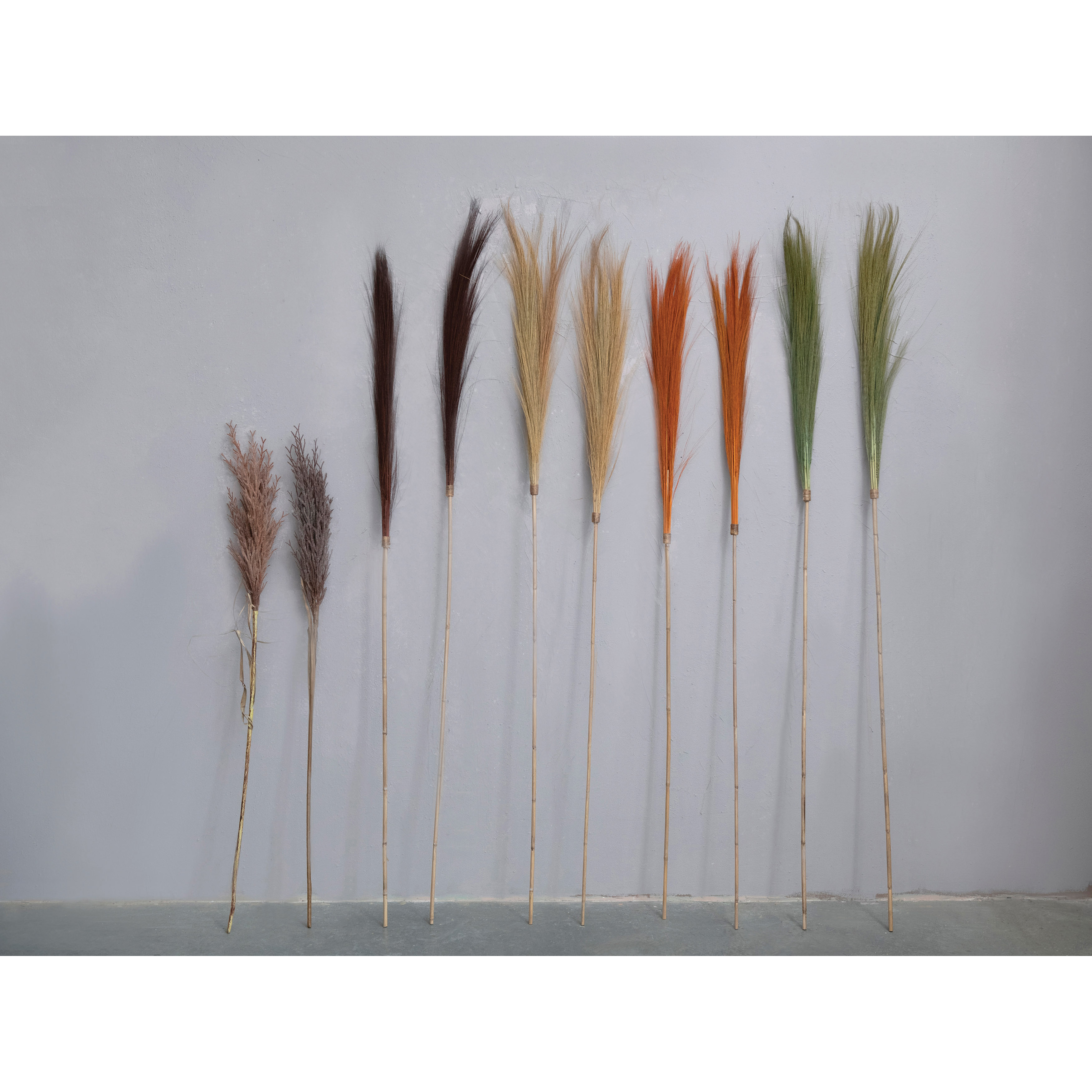 Catalog Name: Approximately 78"H Dried Natural Tiger Grass on Bamboo Pole, Brown
