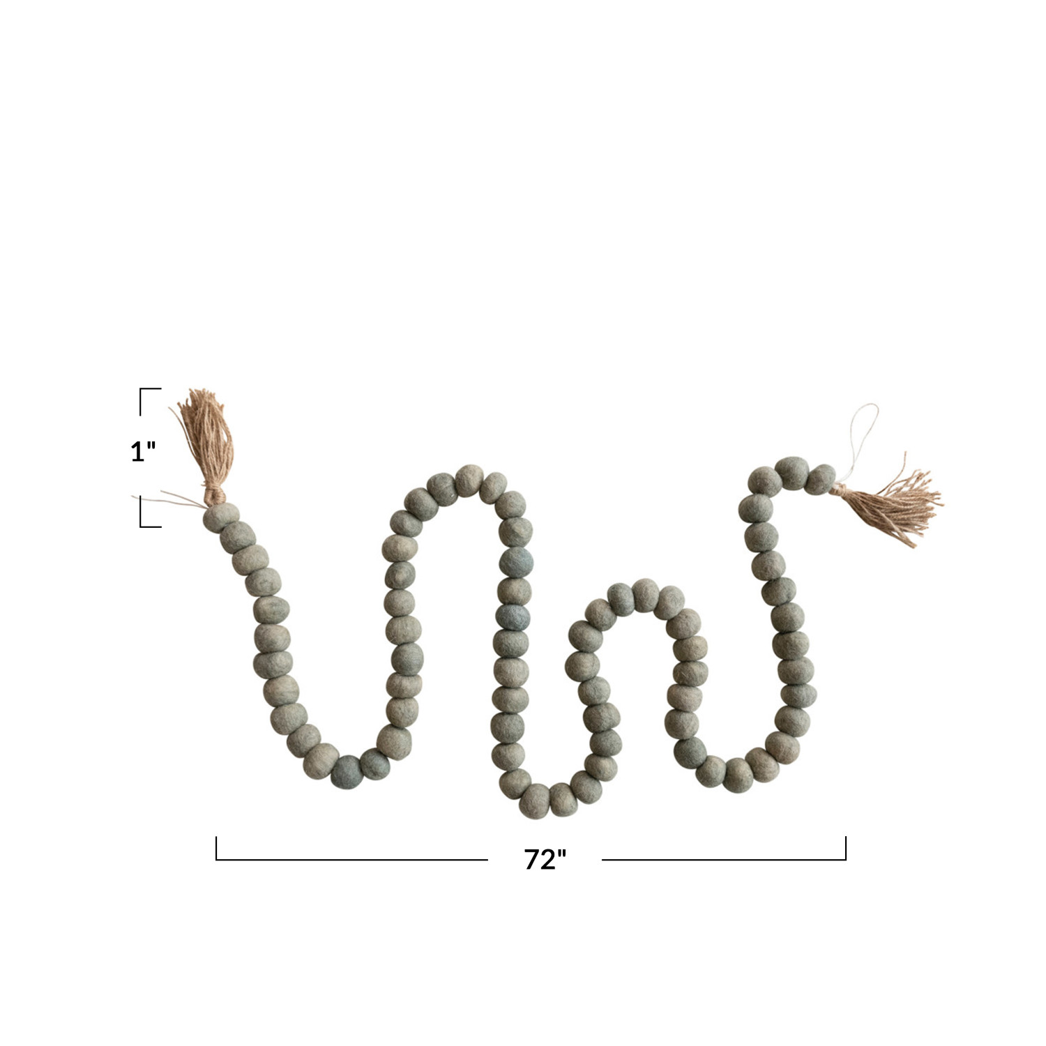 Catalog Name: 72"L x 1"H Handmade Wool Felt Ball Garland w/ Jute Tassels, Grey