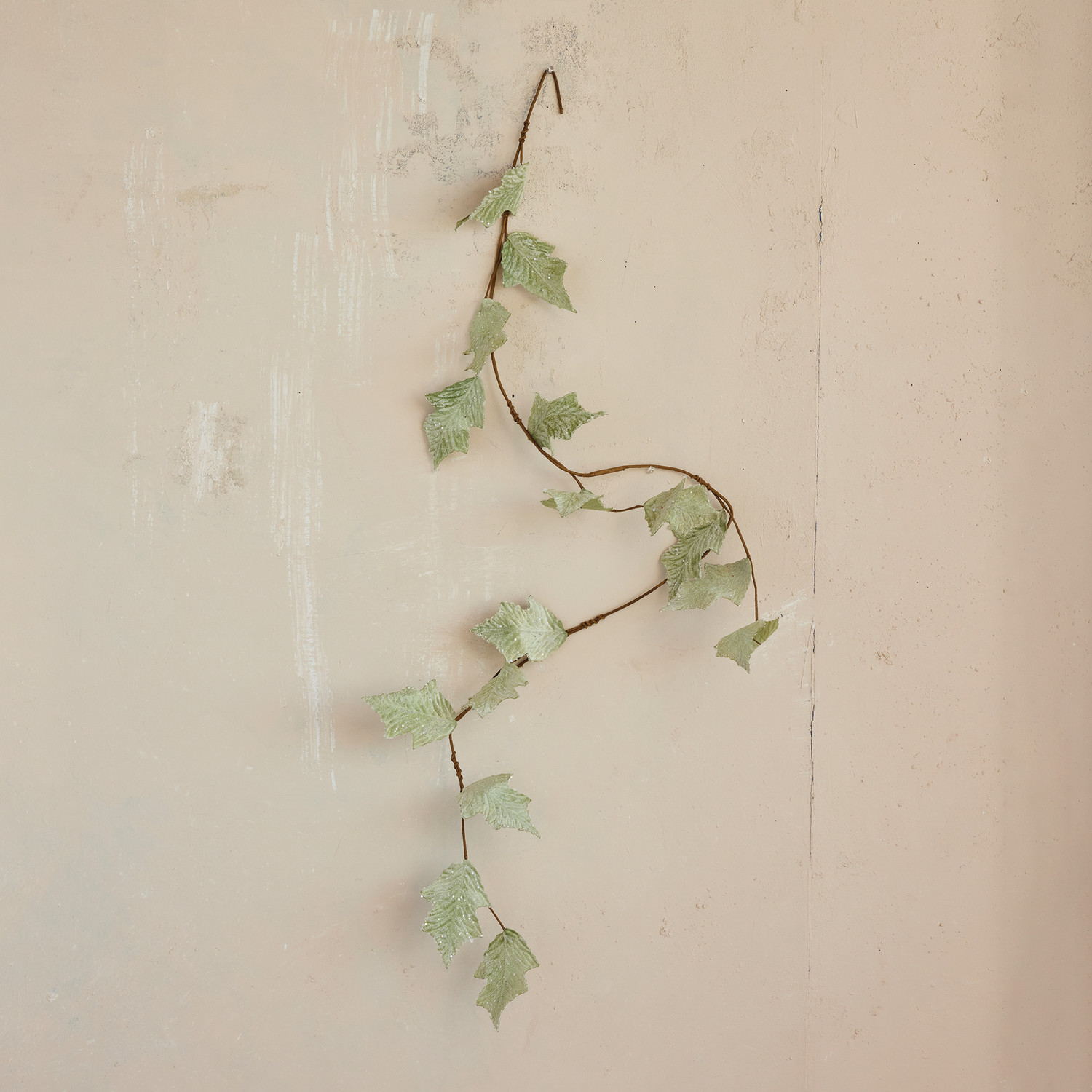 Catalog Name: 72"L x 6"H Faux Leaf Garland w/ Glitter, Ice Finish, Mint Color