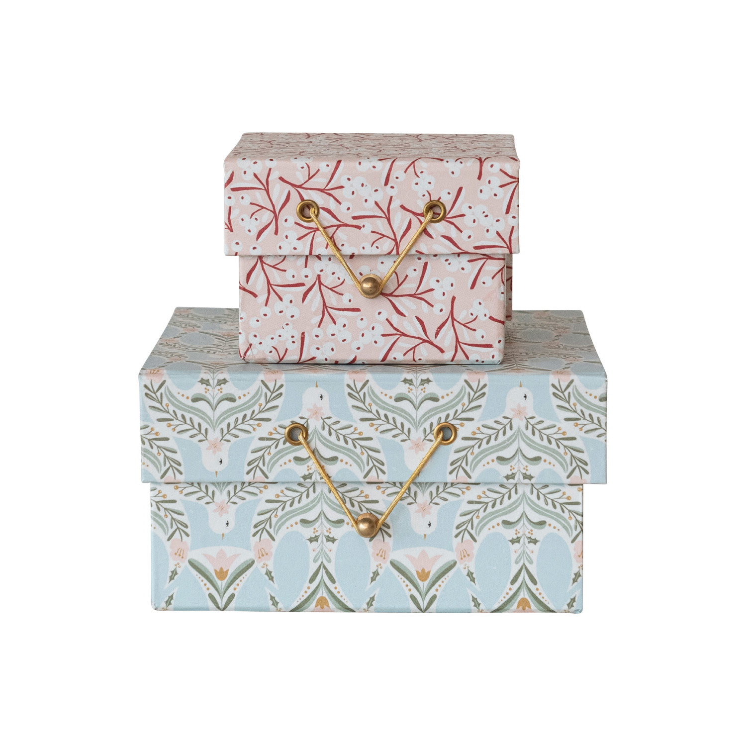 Printed Recycled Paper Gift Boxes w/ Berry/Dove Patterns & Closures, Set of 2 ©