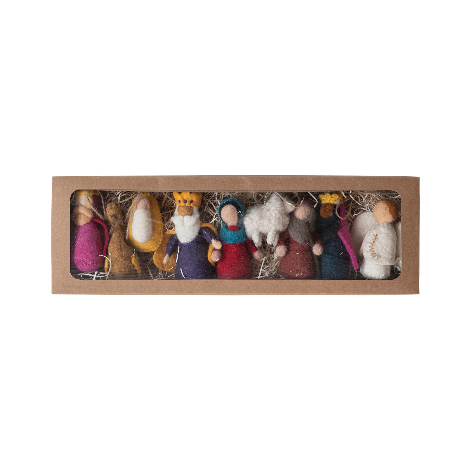 Handmade Wool Felt Nativity in Kraft Box, Set of 9