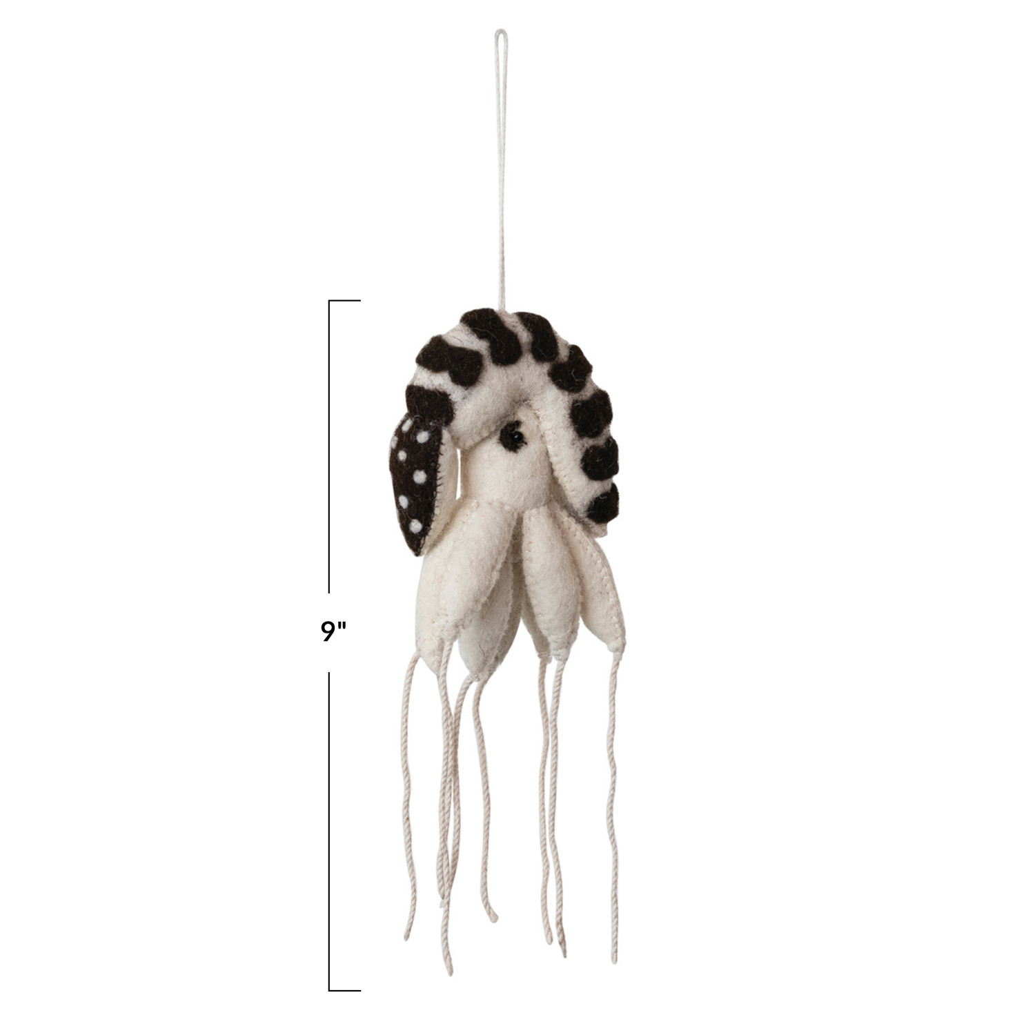 Catalog Name: 9"H Handmade Wool Felt Nautilus Ornament w/ Stitching, Black & Cream Color