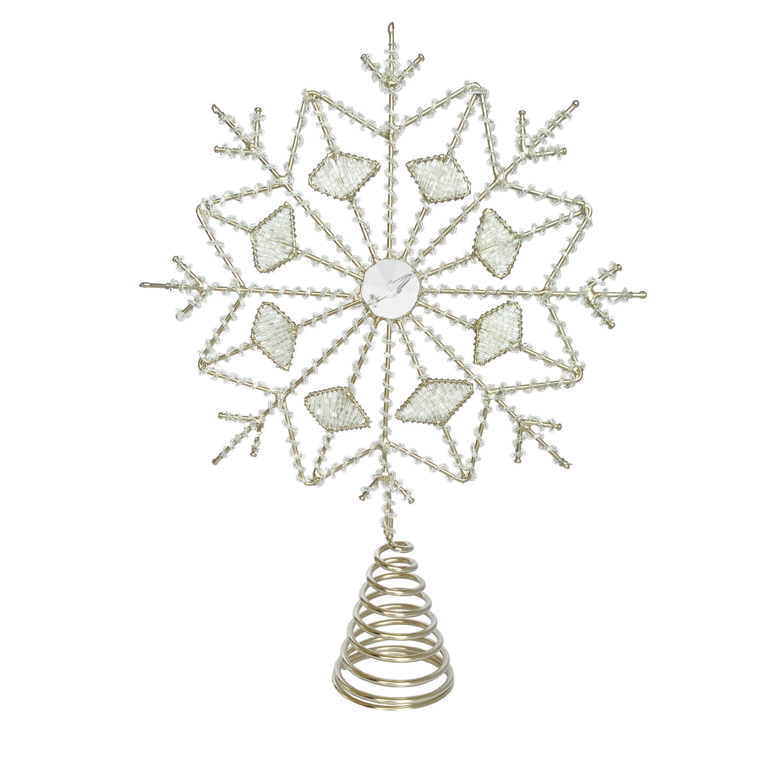 Catalog Name: 8-1/4"L x 2-1/4"W x 11"H Metal & Glass Beaded Snowflake Tree Topper, Silver Finish