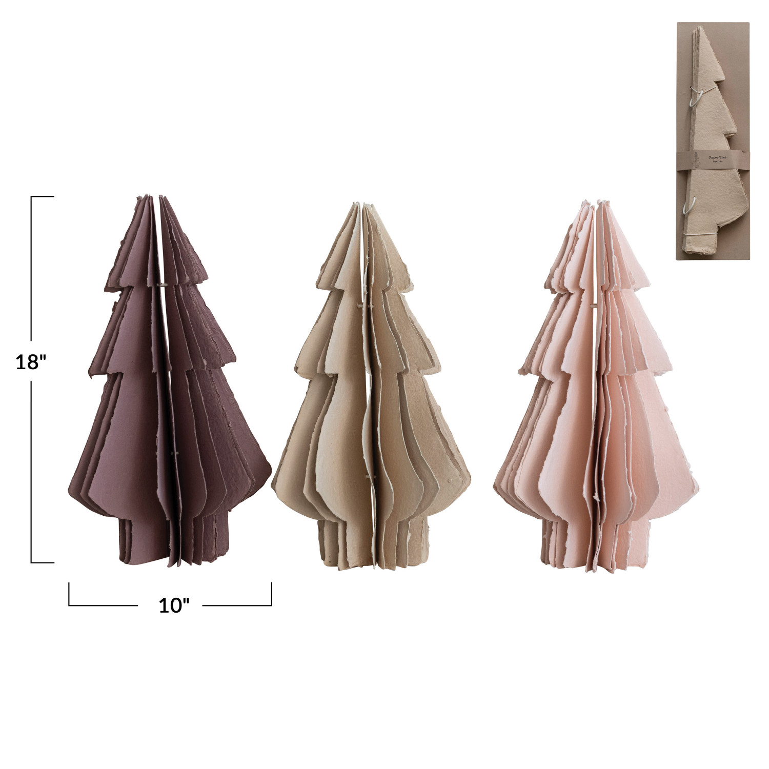10" Round x 18"H Handmade Recycled Paper Folding Tree, 3 Colors