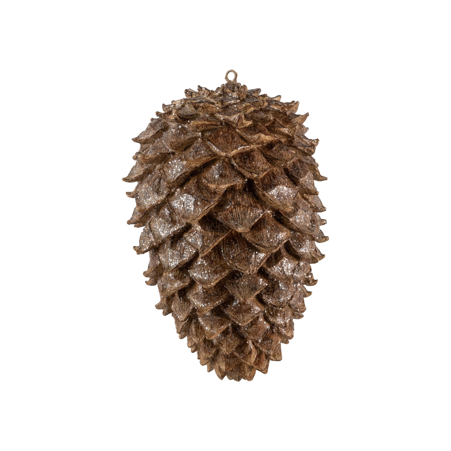 Catalog Name: 7" Round x 10-1/2"H Resin Pinecone w/ Glitter, Brown