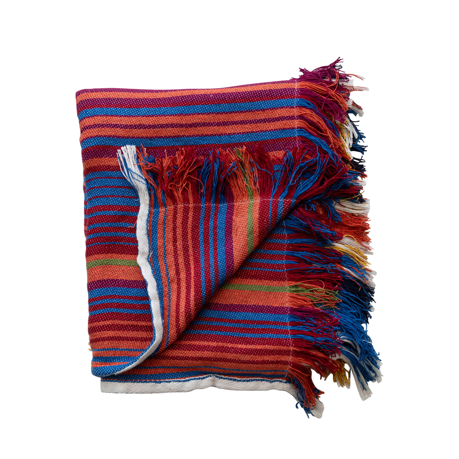 Catalog Name: 60"L x 50"W Woven Fabric Indoor/Outdoor Striped Throw w/ Fringe, Multi Color