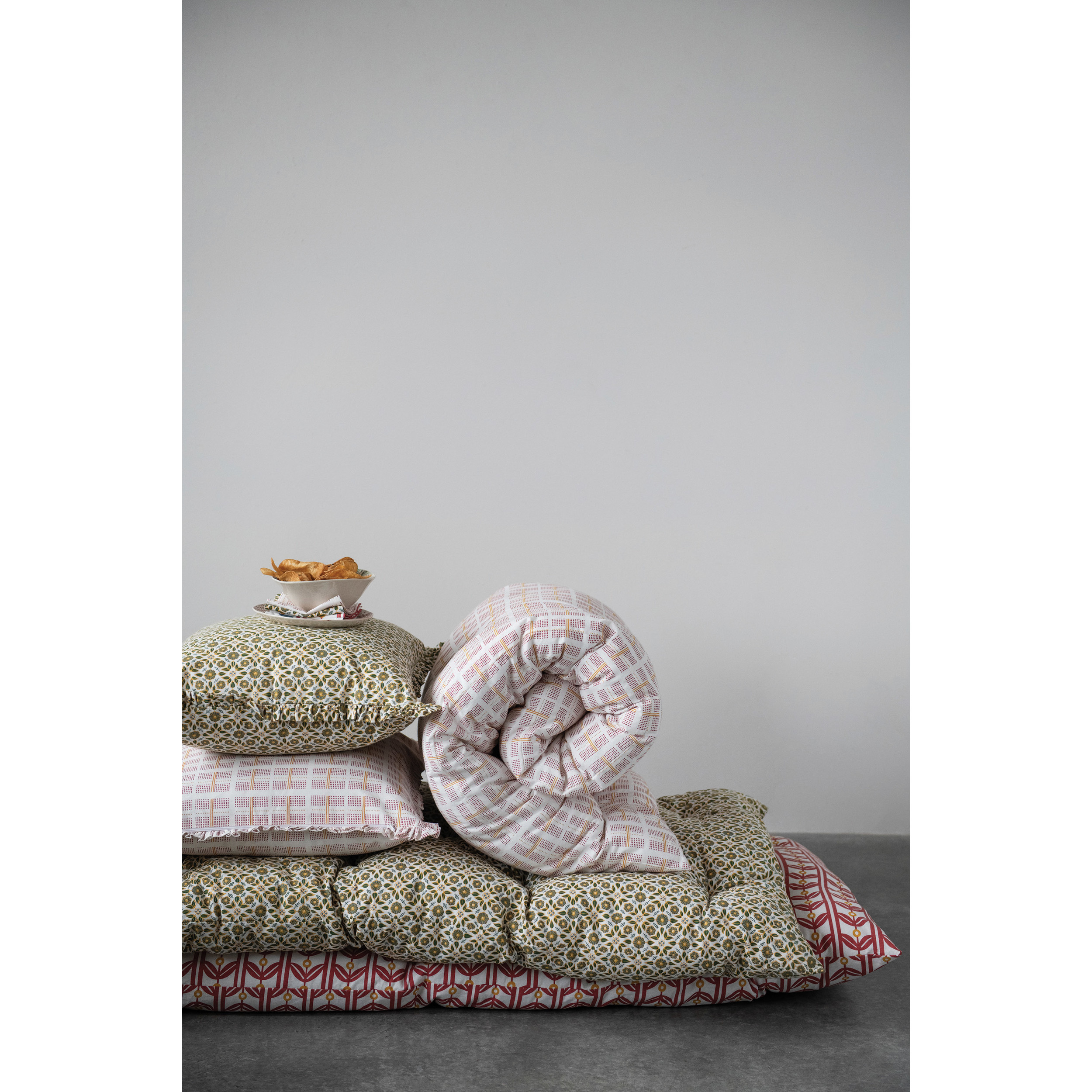 20" Cotton Printed Pillow with Ruffled Edge, 2 Styles