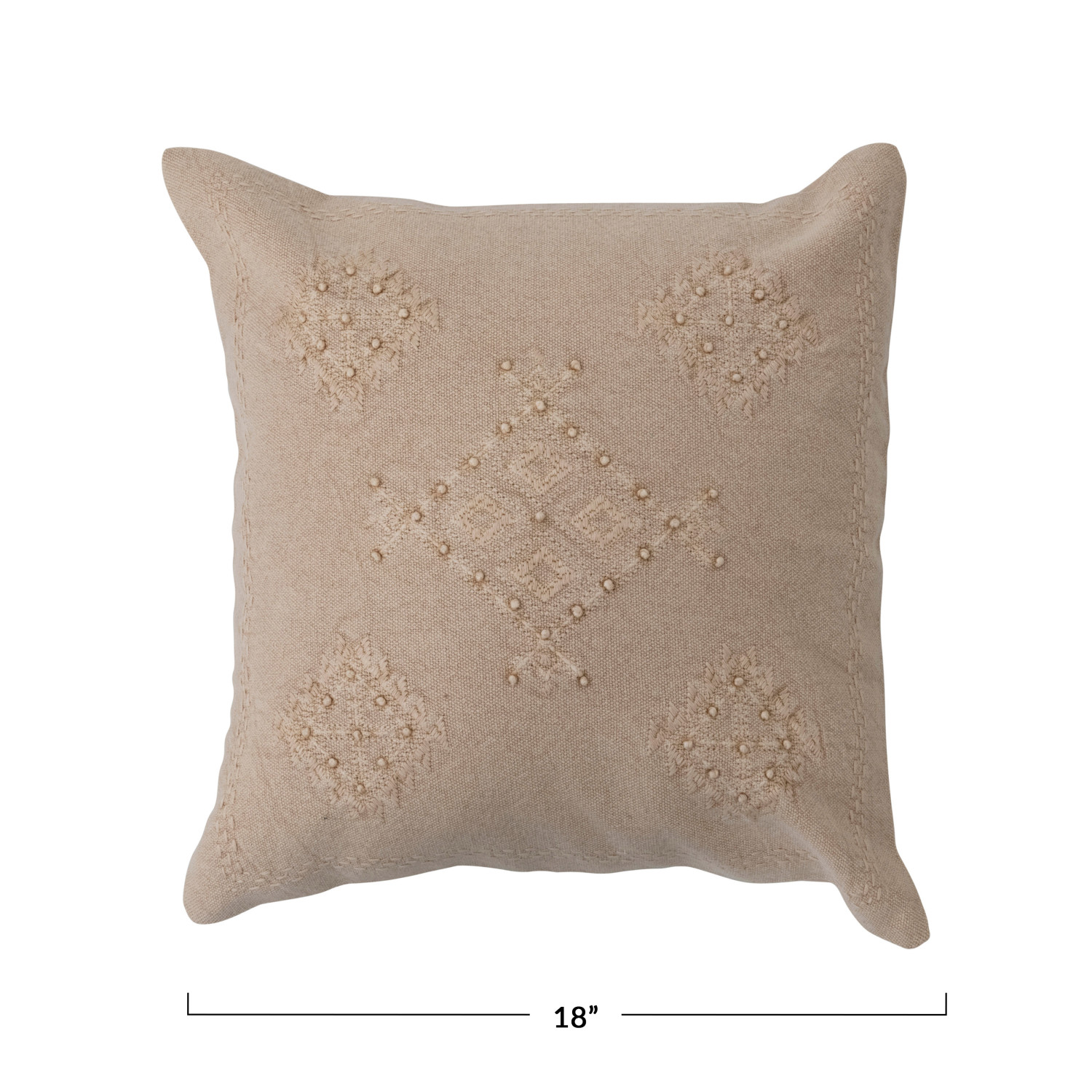 Catalog Name: 18" Square Woven Cotton Pillow w/ Embroidery & French Knots, Polyester Fill, Linen Color