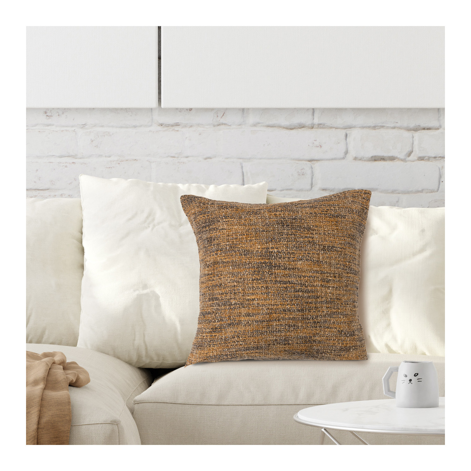Catalog Name: 20" Square Melange Cotton Blend Bouclé Pillow, Copper Color & Black