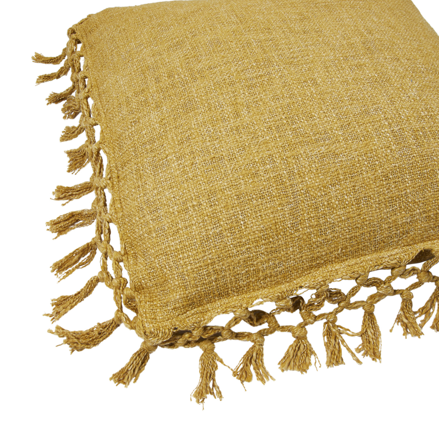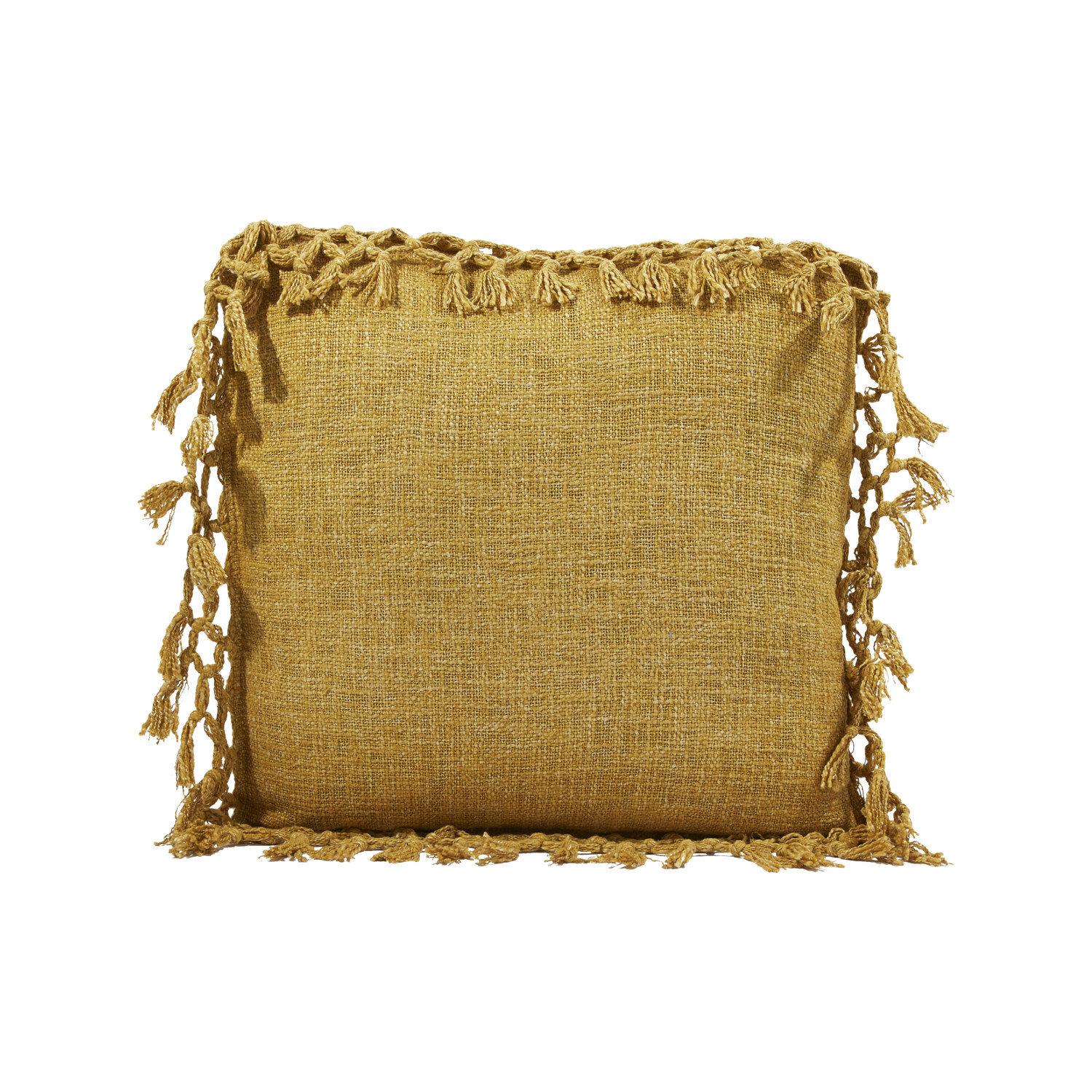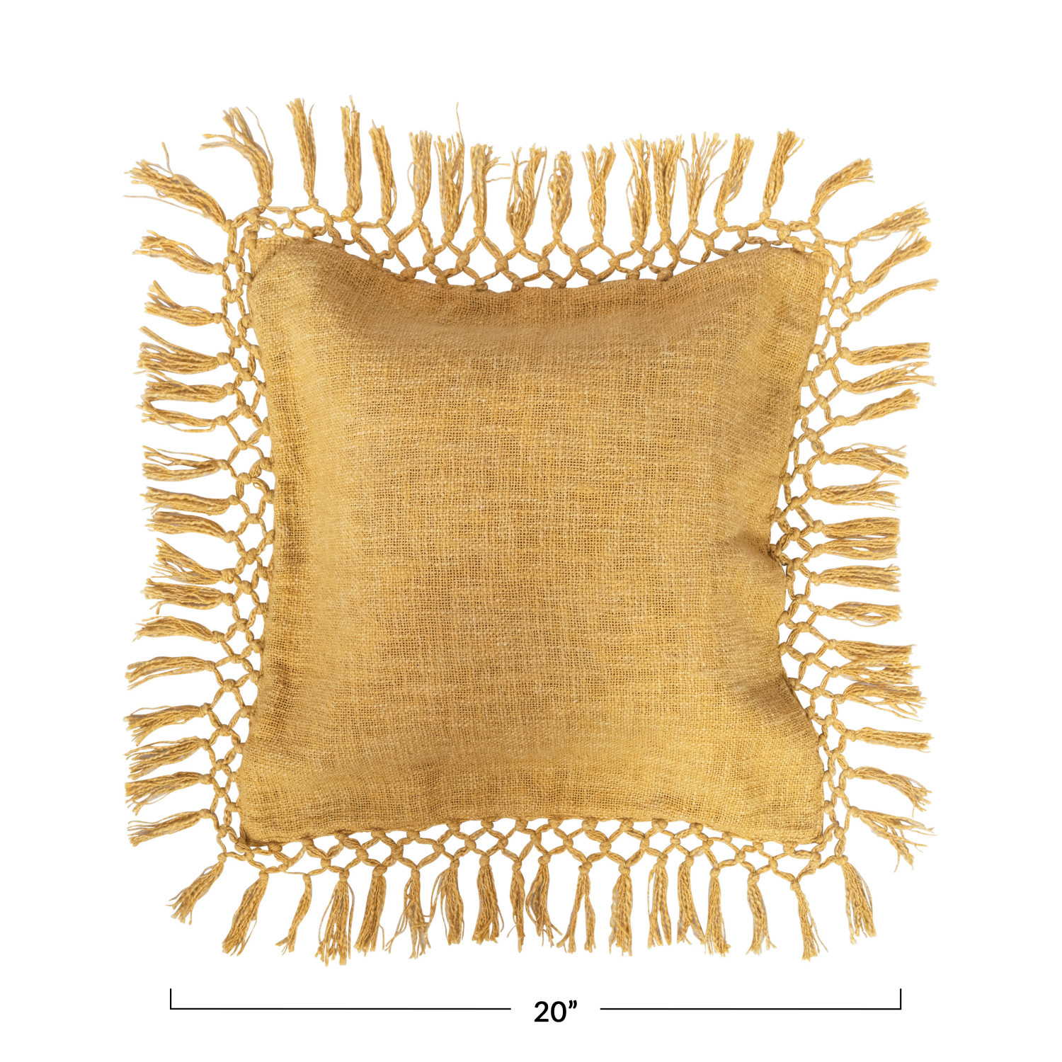 Catalog Name: 20" Square Cotton Slub Pillow w/ Crochet & Fringe, Mustard Color