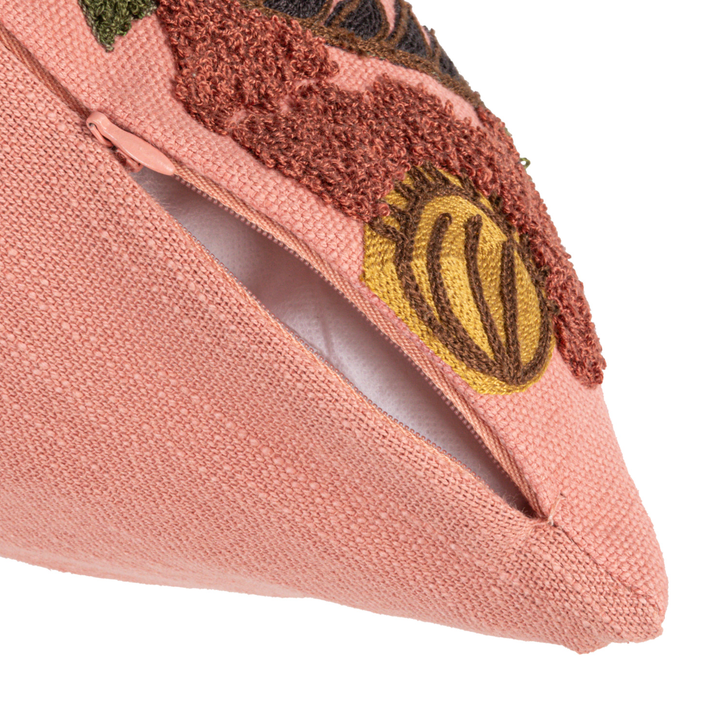 Catalog Name: 20" Square Cotton Slub Pillow w/ Embroidered Tiger & Flowers, Multi Color