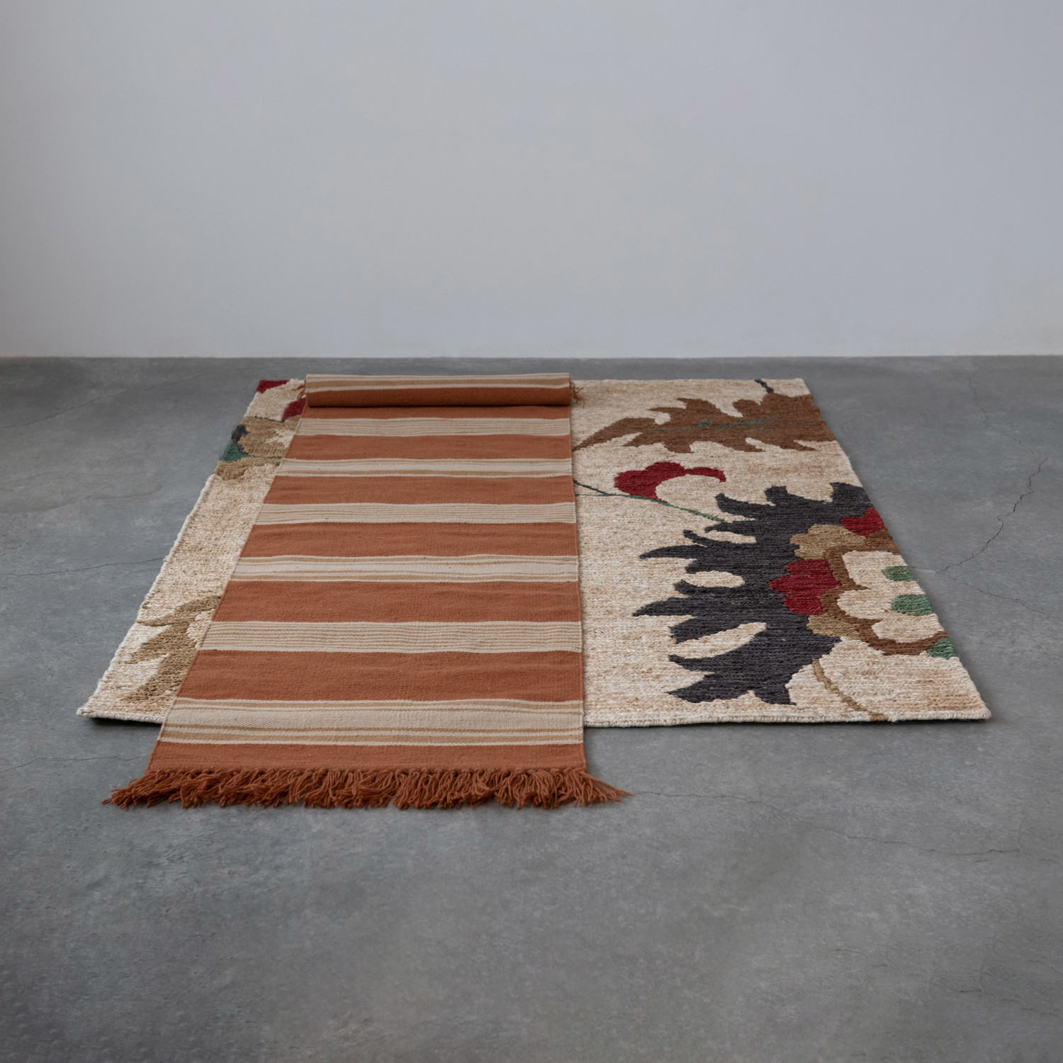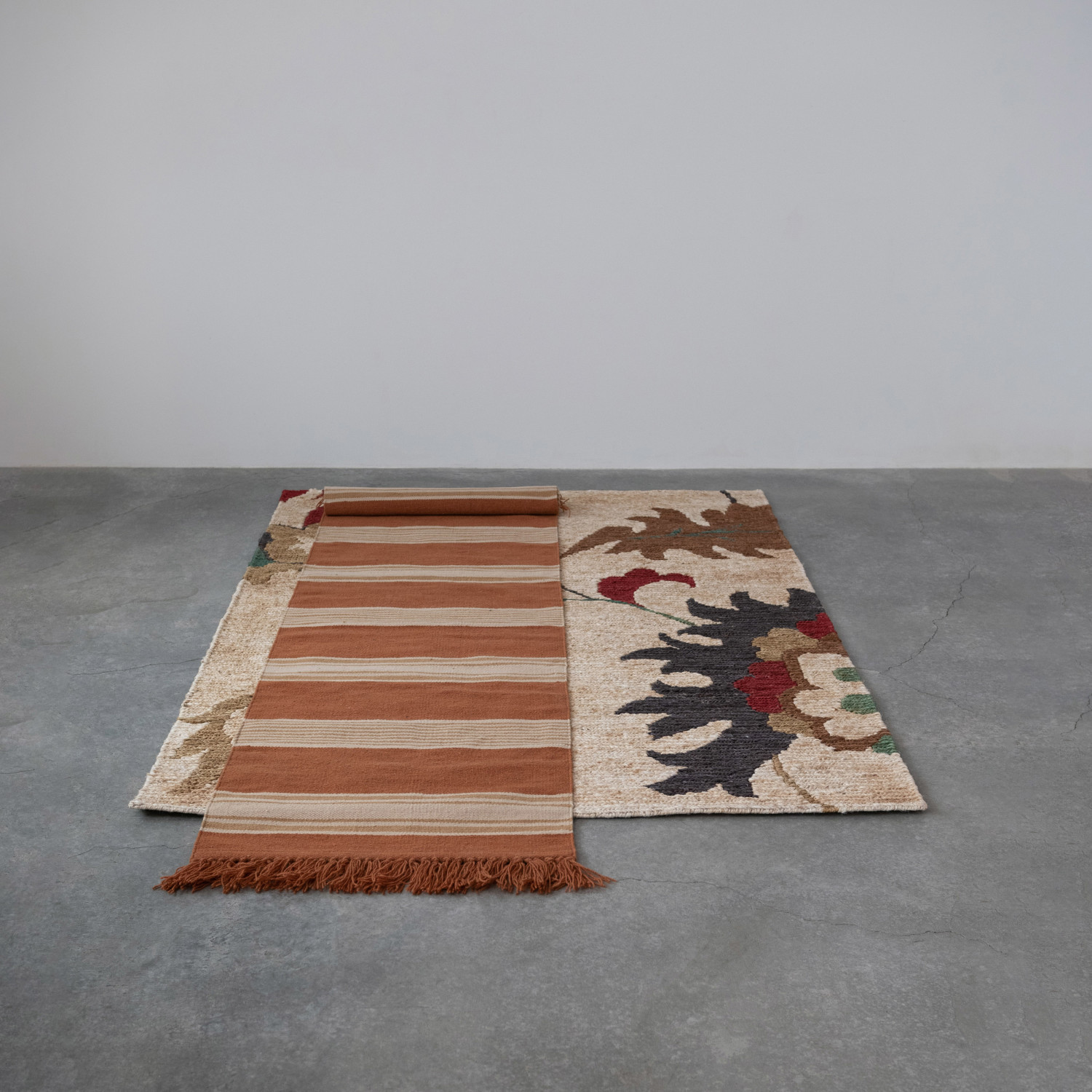 Woven Jute Rug w/ Florals