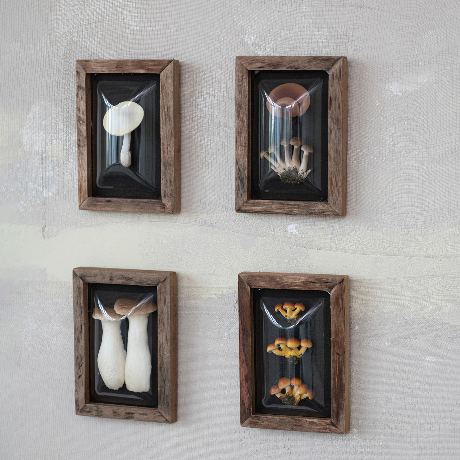 Catalog Name: 4-3/4"W x 6-3/4"H Wood Framed Convex Plastic Shadow Box Wall Décor w/ Faux Mushrooms, Multi Color, 4 Styles